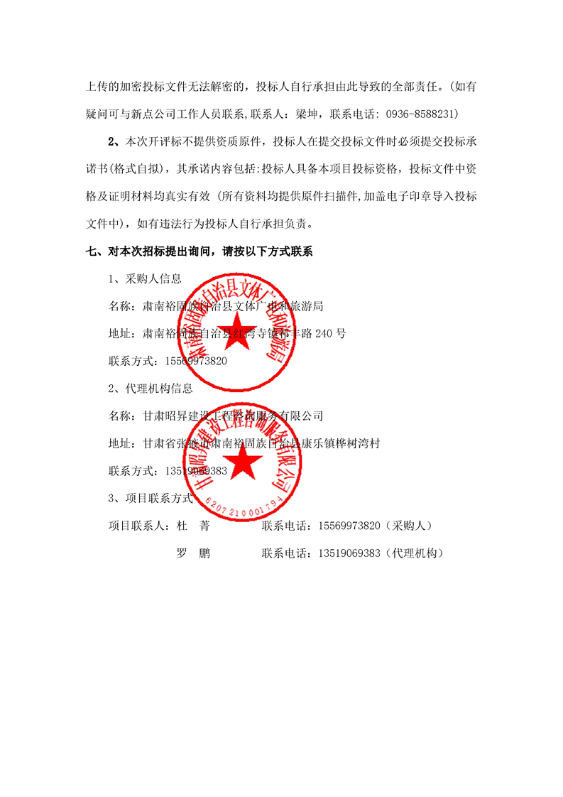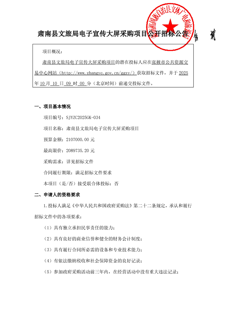 肃南县文旅局电子宣传大屏采购项目公开招标公告