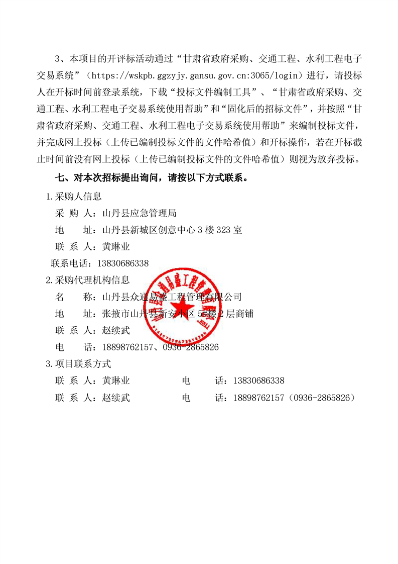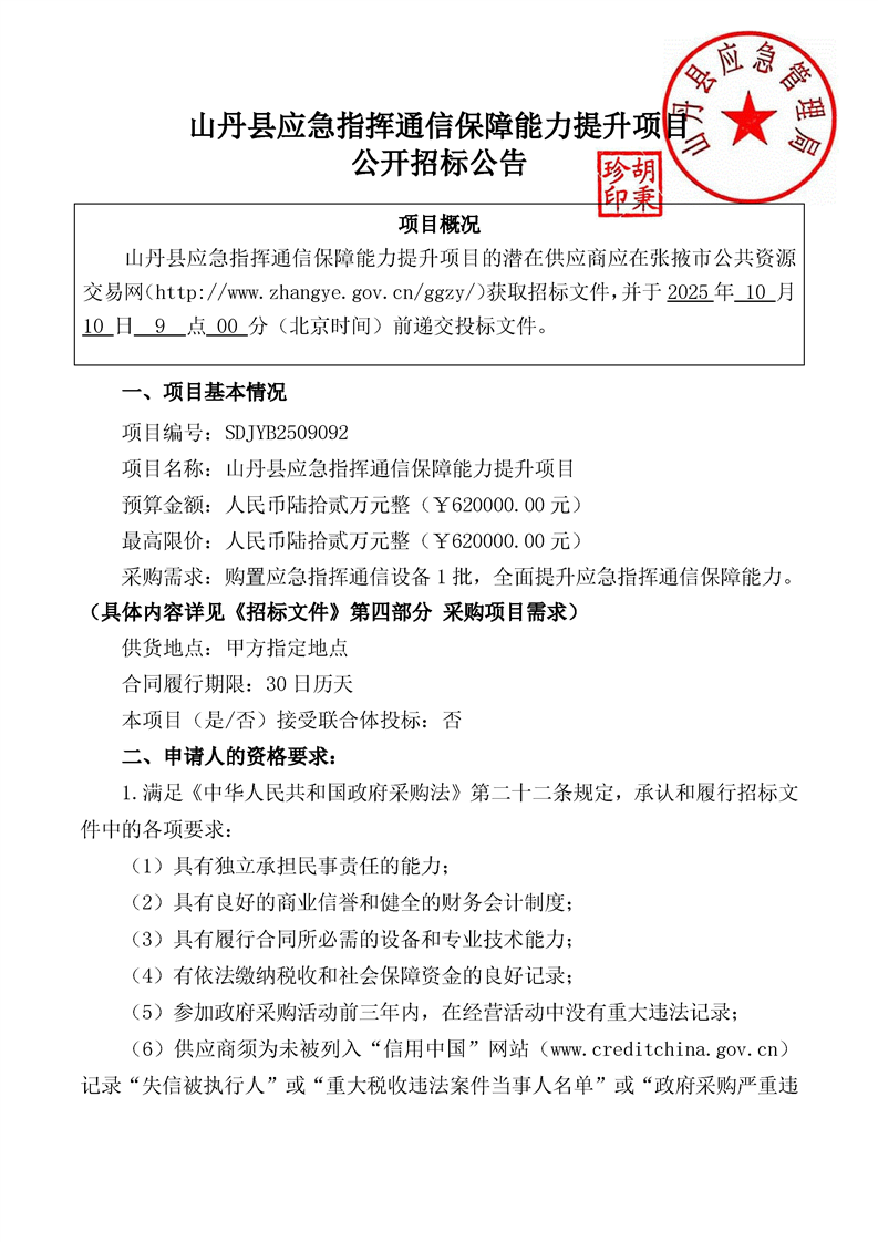 山丹县应急指挥通信保障能力提升项目公开招标公告