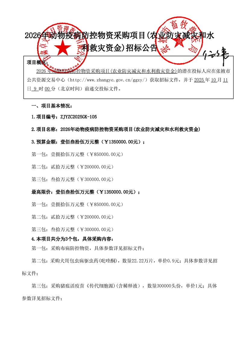 > 2026年动物疫病防控物资采购项目(农业防灾减灾和水利救灾资金)